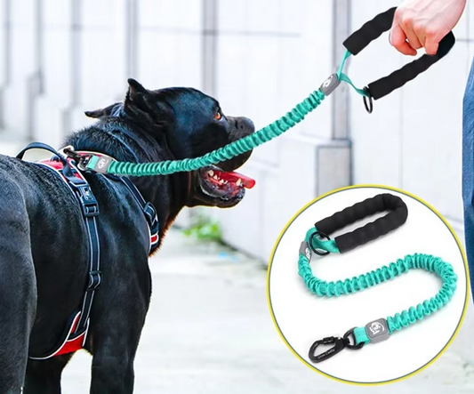 Elastic dog leash with shock absorption