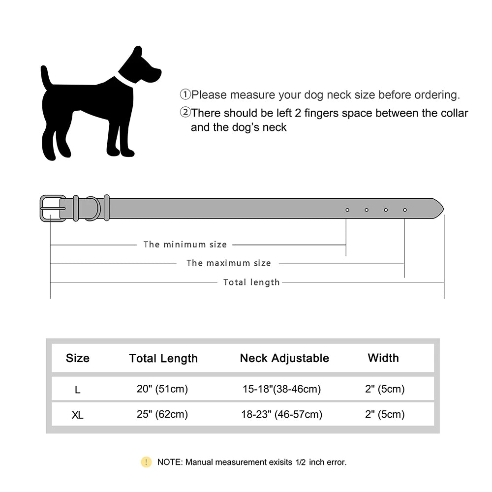 2inch Wide Luxury Genuine Leather Dog Collar Durable Metal Rivet Collars